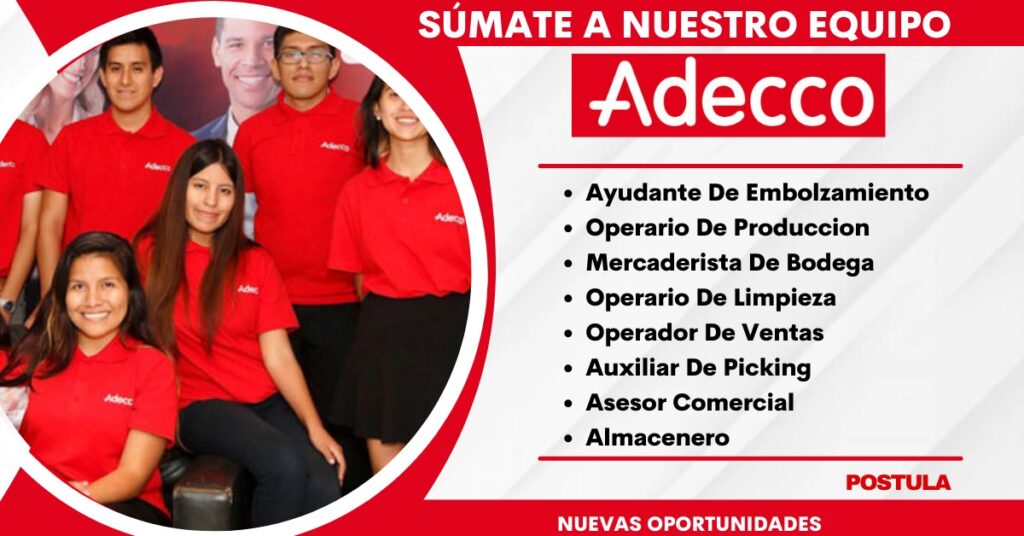 ADECCO - Importante compañía cuenta con nuevos puesto de trabajo