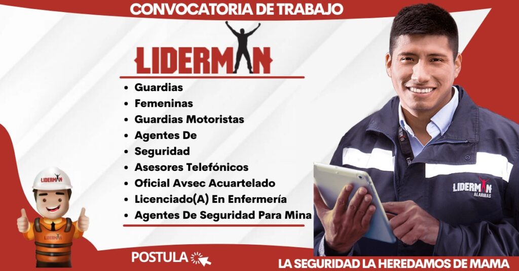 Quienes deseen postular a cualquiera de las plazas disponibles de la empresa LIDERMAN podrán hacerlo en el enlace que pertenece a su país:
