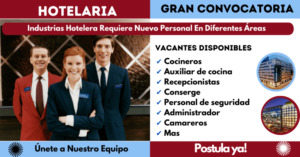 • Formación académica: formación técnica o profesional. Experiencia: 5 años de experiencia exitosa en la recepción de hoteles.